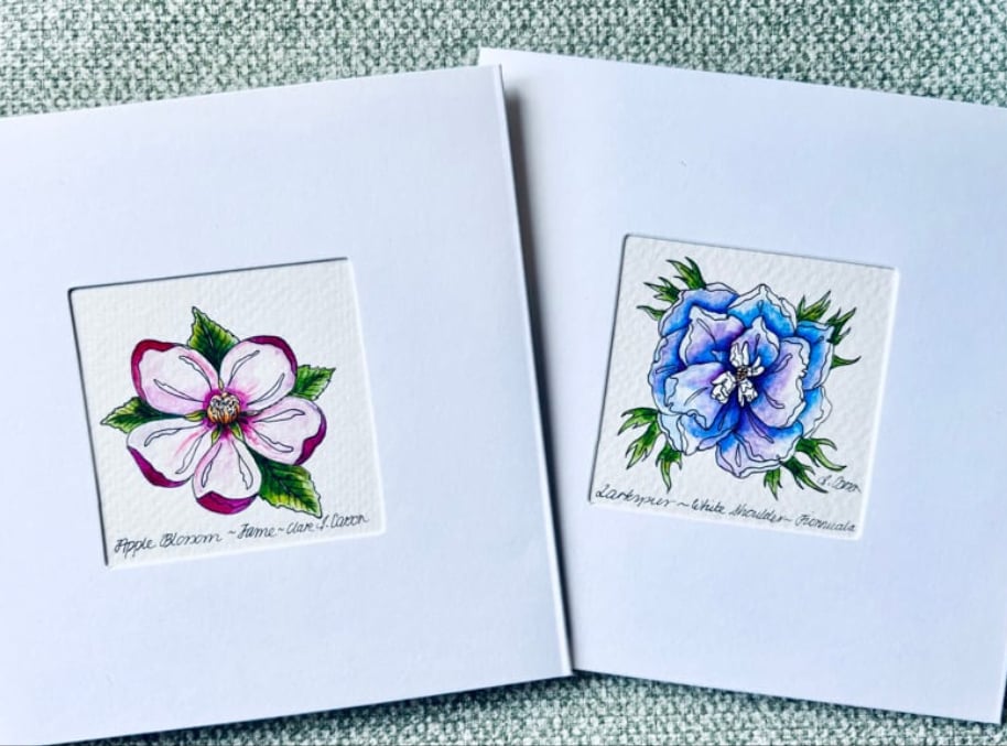 The cards shown are examples. They are perfect little works of art and can be framed by the recipient